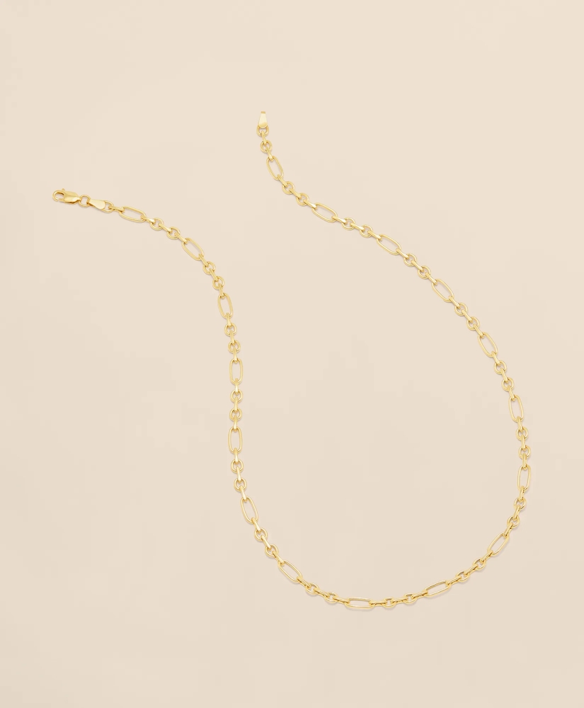 Designed with subtle rhythm, this 14k yellow gold necklace features alternating round and oval links along an 18-inch chain. Finished with a lobster clasp, it layers effortlessly or shines on its own with quiet distinction.