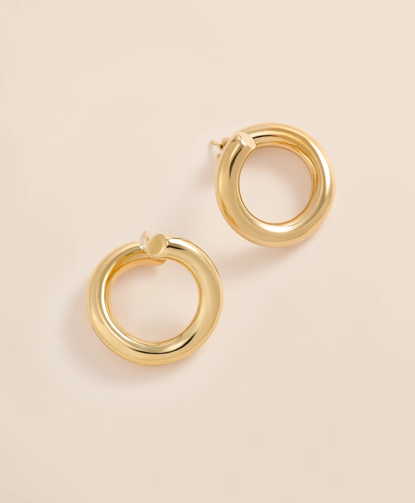 A refined reinvention of a classic, these 14k yellow gold hoop earrings bring depth and dimension to a timeless shape. Measuring 23.38mm by 25.02mm, they're a polished staple you'll return to again and again.