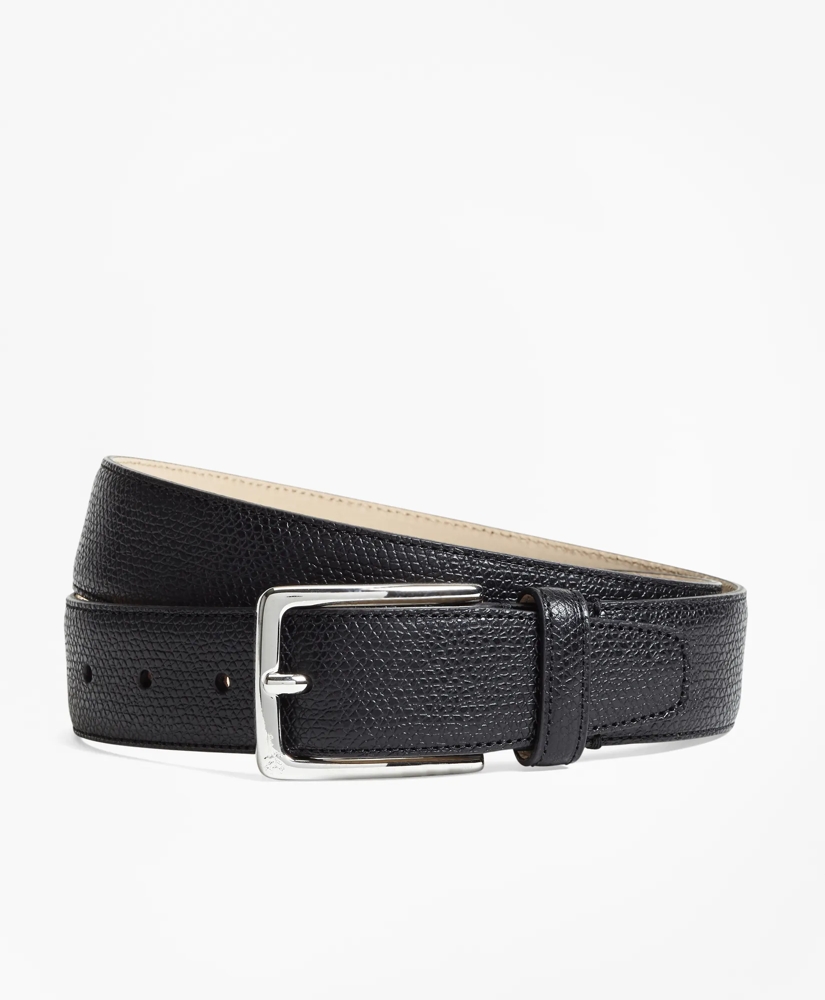 Genuine Italian leather belt, with brushed silver-toned brass hardware. 1.25" width.