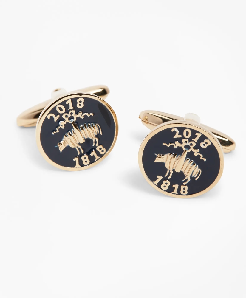 Join us as we celebrate our 200th anniversary with these gleaming, enameled cuff links. Crafted from gleaming 14k gold-plated sterling silver, this timeless design features our Golden Fleece® emblem framed by the year of our founding and the present year, along with a classic bullet back.