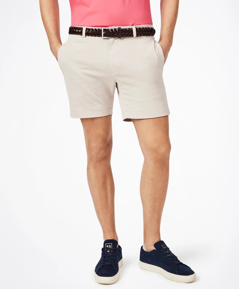 Casual style never felt or looked better. Perfect for the weekend, these shorts are made from a soft cotton jersey knit. A twill-like appearance means you'll look polished wherever you go. This lightly washed pair has an interior woven waistband with contrast-color piping, plus a coin pocket and side-entry pockets. 7" inseam. Machine was according to care instructions for best results. Imported.