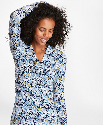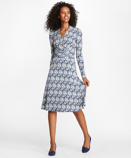 Bamboo-Print Jersey Faux Wrap Dress