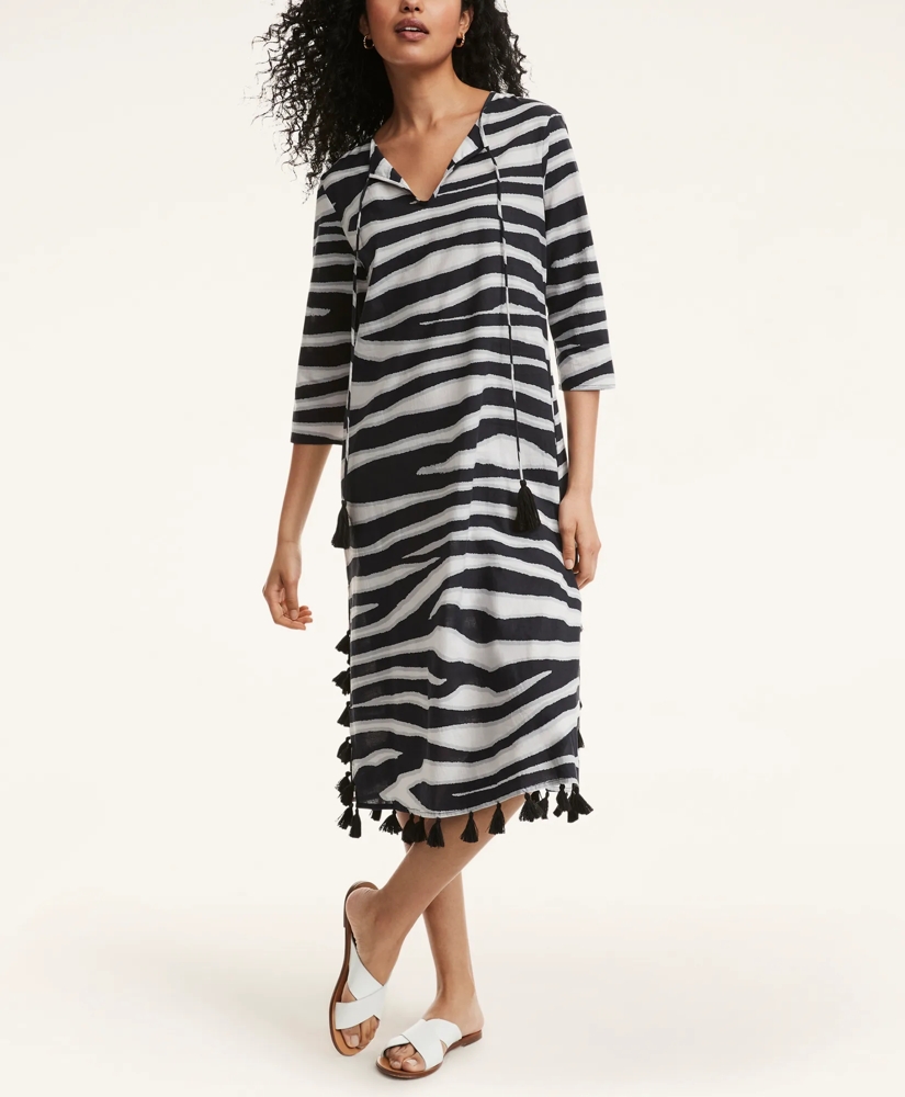 We've created the perfect beach coverup with crisp cotton voile, delicate fringe and a bold zebra print.