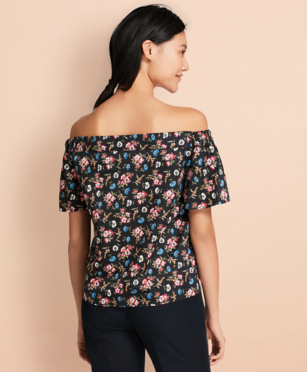 Floral-Print Cotton Sateen Off-the-Shoulder Top