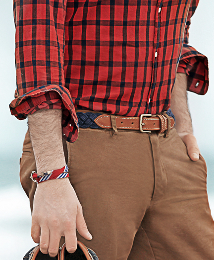 Kiel James Patrick crafts handmade bracelets and belts in his native Rhode Island. With a strong commitment to local artisans and American manufacturing, Kiel has taken his cottage industry worldwide. Our exclusive collaboration combines KJP's nautical inspired bracelets and belts with Brooks Brothers most respected fabrics and repp tie patterns. Made in the USA.