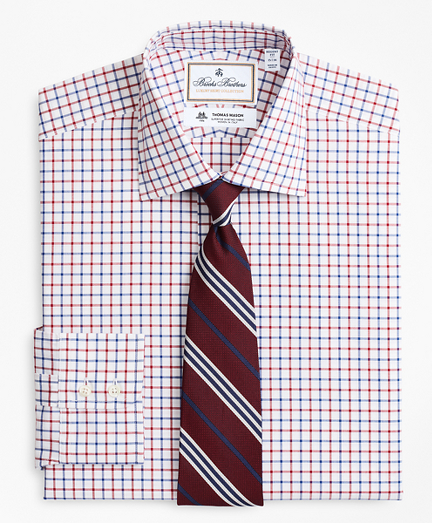 Crafted from fine Italian cotton woven by the renowned Thomas Mason® Mill, this shirt's clean, elegant look relies on modern design and traditional tailoring, including an invisible French placket and concealed stitching at the front shoulder and back yoke. Our luxury shirts feature genuine mother-of-pearl buttons, double-button barrel cuffs with our signature 6-Pleat Shirring® and pucker-free single-needle side seams. Finished with our new Franklin spread collar which measures 5½" from point to point, making a fine complement for a Half-Windsor tie knot. Machine wash. Imported.