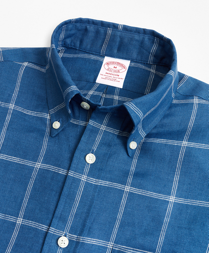 Madison Fit Double-Windowpane Irish Linen Sport Shirt