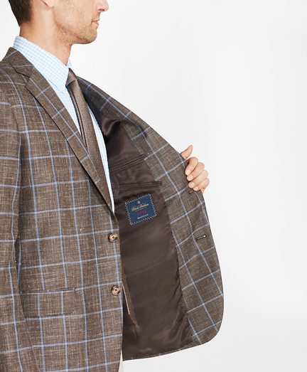 Madison Fit Saxxon™ Wool Brown with Blue Windowpane Sport Coat