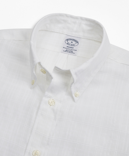 Regent Fit Textured Windowpane Irish Linen Sport Shirt