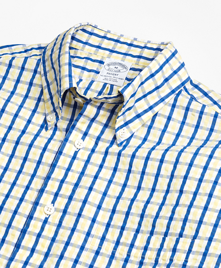 Regent Fit Yellow Check Seersucker Sport Shirt