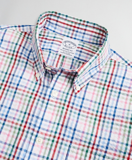 Regent Fitted Sport Shirt, Seersucker Multi-Check