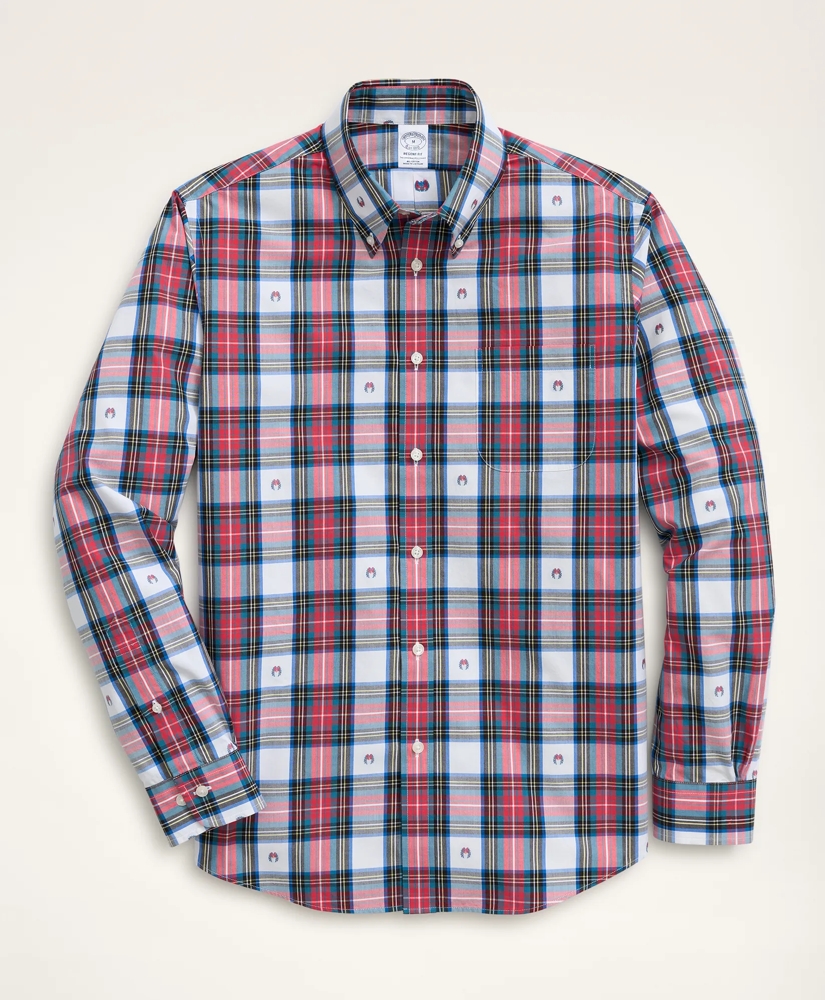 Festive holly embroidery adorns our tartan sport shirt made from ultra-soft cotton for a comfortable nod to seasonal style.