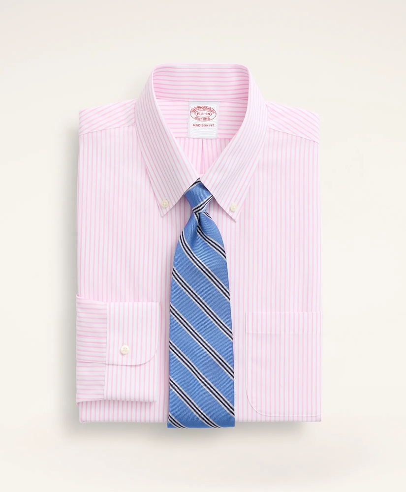 Stretch Madison Relaxed-Fit Dress Shirt, Non-Iron Poplin Button-Down Collar Pencil Stripe