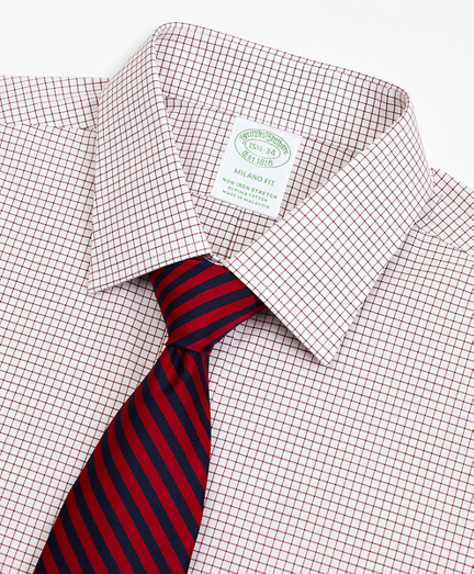 Stretch Milano Slim-Fit Dress Shirt, Non-Iron Poplin Ainsley Collar Small Grid Check