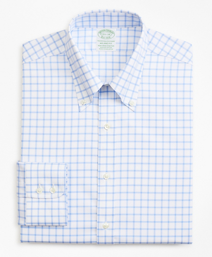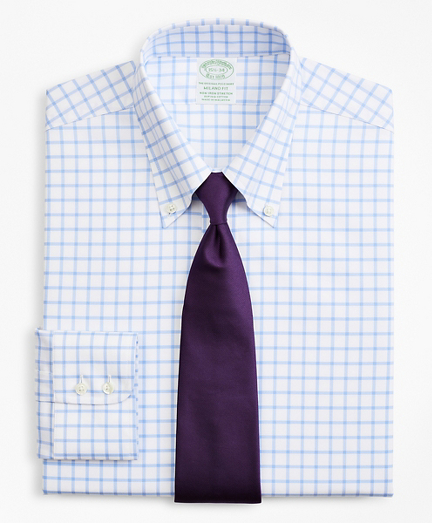 Stretch Milano Slim-Fit Dress Shirt, Non-Iron Twill Button-Down Collar Grid Check
