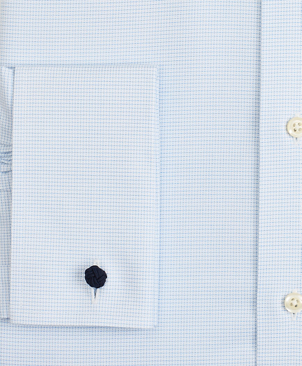 Stretch Milano Slim-Fit Dress Shirt, Non-Iron Twill English Collar French Cuff Micro-Check
