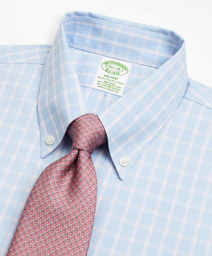 Stretch Milano Slim-Fit Dress Shirt, Non-Iron Windowpane