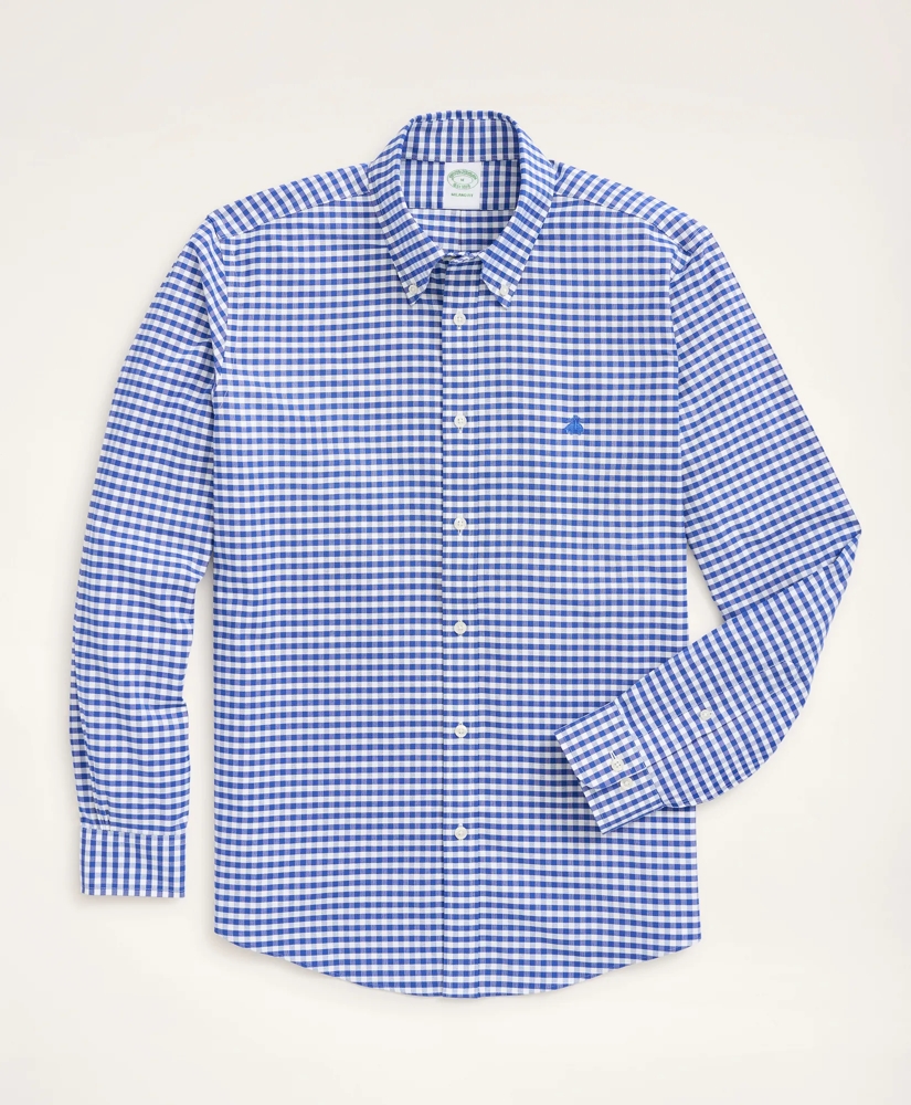 Stretch Milano Slim-Fit Sport Shirt, Non-Iron Gingham Oxford