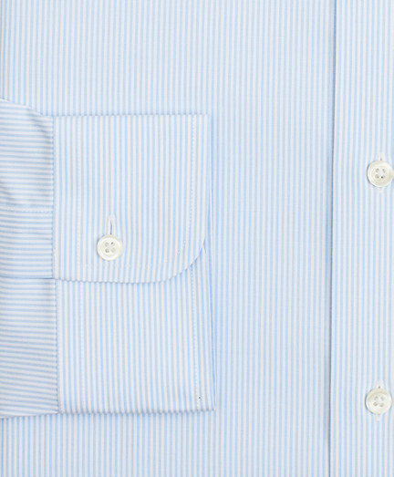 Our non-iron dress shirt is crafted from stretch poplin woven from American-grown Supima® cotton and elastane. The English spread collar provides an ideal frame for more substantial tie knots and has a point to point spread of 5.5". It is specially treated to resist wrinkles, and our signature 6-Pleat Shirring® at the barrel cuffs and pucker-free seams reinforce Brooks Brothers' dedication to a well-made dress shirt. Additional features include a French front placket. Machine wash according to care instructions for best performance. Imported.