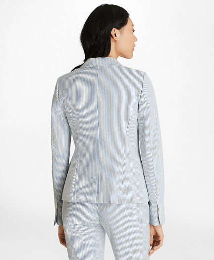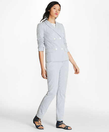 Striped Stretch-Cotton Seersucker Double-Breasted Jacket