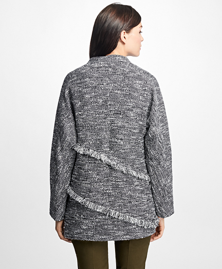 Tweed Fringe Inverted V-Neck Jacket