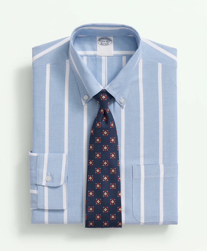 American-Made Cotton Pinpoint Button-Down Collar, Bold Striped Dress Shirt