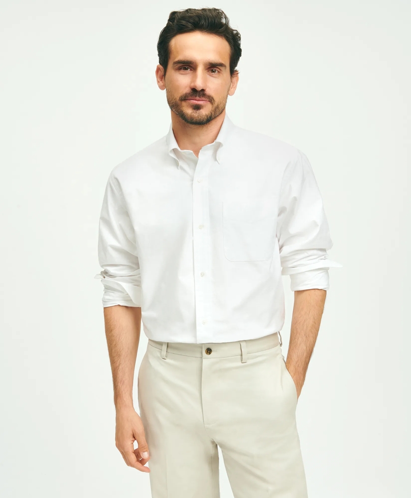 Invented by us in 1900, inspired by polo players who pinned their collars to prevent flapping during game play, the Oxford Cloth Button Down is an icon of American style. We reintroduce this shirt in its most genuine expression. Signature details include our ideal rolled collar, generous Traditional fit with side seam gusset, 6-button front placket and dress shirt sizing, made in a dense 100% cotton oxford cloth woven in the USA that improves with age. A Made in America Brooks Brothers classic.