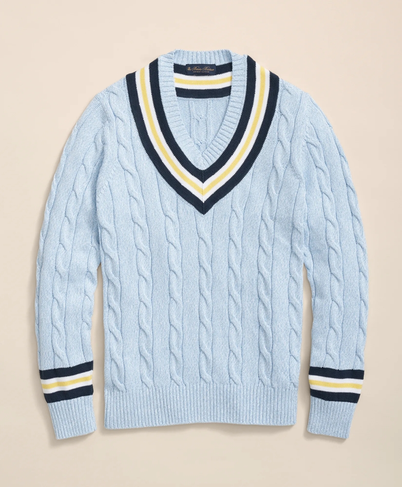 As a longstanding partner of the Tennis Hall of Fame, our label and this classic sport go together like your favorite doubles team. Our spring-forward V-neck with an allover cable knit and timeless tipping is inspired by our archives and made from Supima®, the world's finest long-staple cotton.