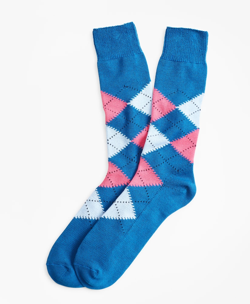 Our socks are known for their exceptional comfort and durability. Crafted from 86% cotton, 12% nylon and 2% Elastane. Crew length sock with a multi-color argyle design and ribbed cuff.