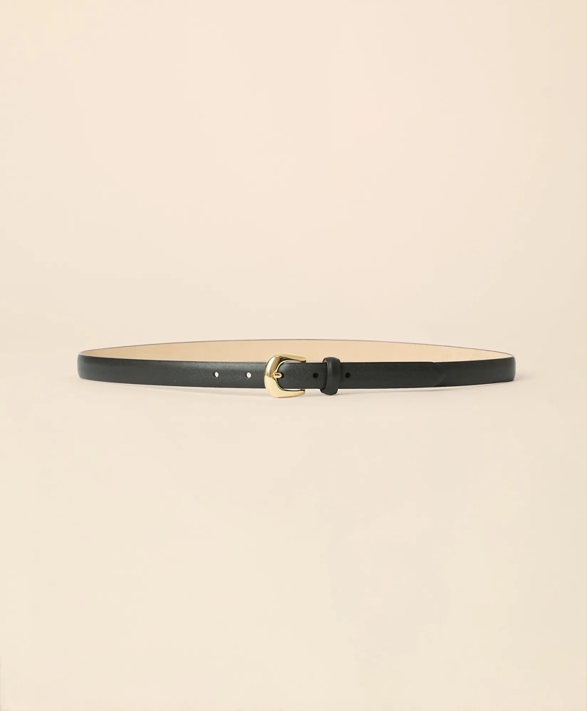 This classic skinny belt is made from genuine leather with a simple gold-tone buckle and subtle leather keeper. You'll wear this timeless hip belt for years to come.