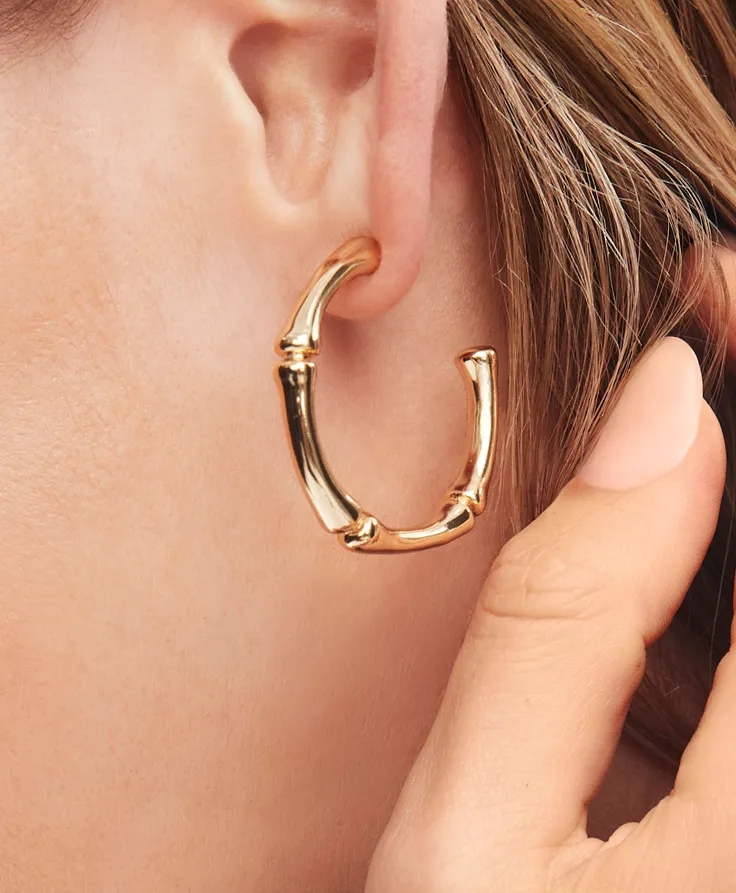 Evoking natural jewelry from a classic era, our bamboo hoop earrings featuring gold-tone accents that catch the light, day or night.