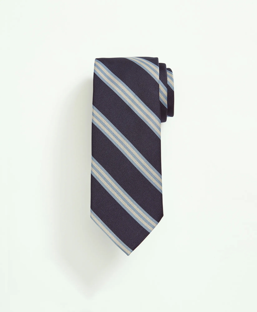 The classic Rep tie dates to the early 20th century when Britain donned their regimental ties with left-to-right stripes to represent heart to sword. They quickly caught on with the boarding school and social club set. And in 1902 we Americanized the style by switching the direction of the stripes in a nod to every-man democracy. Today the mini BB#1 pattern made from silk expertly woven in Italy is an enduring classic having graced the collars of our biggest pop-art stars and presidents for over a century.