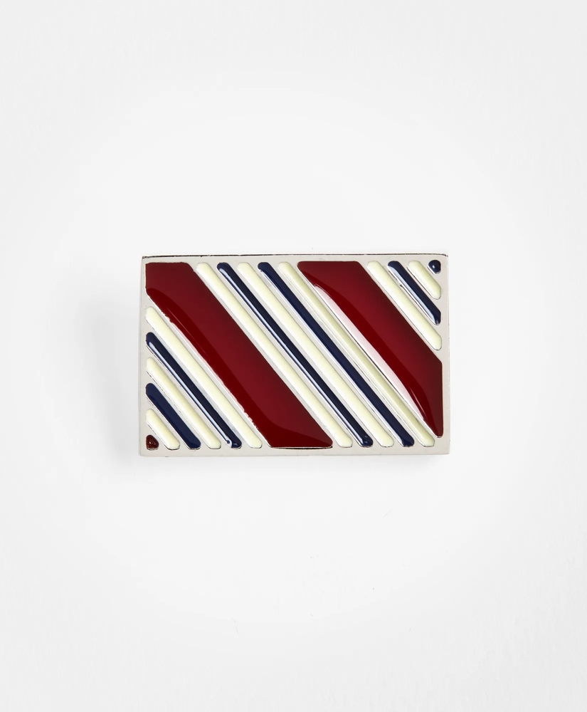 Lapel pin with BB#1 stripe detail. Badge pin with butterfly closure. Sterling silver. Logo etched on back. Imported.