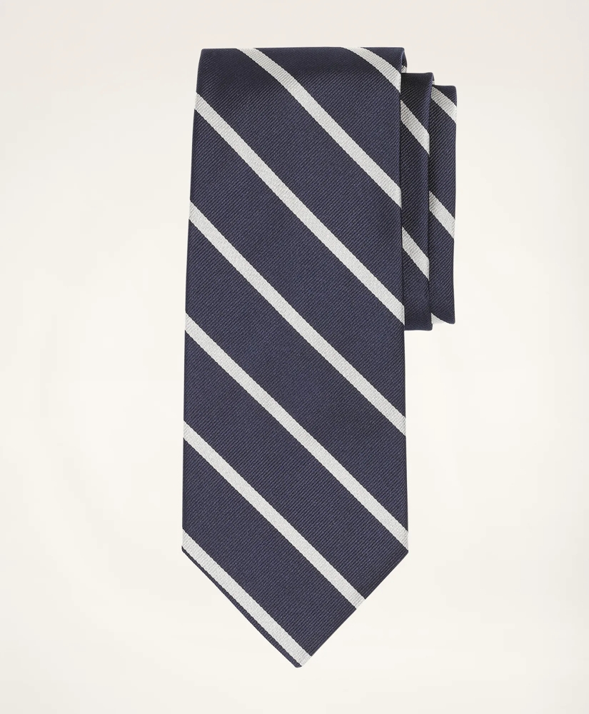 The classic Rep tie dates to the early 20th century when Britain donned their regimental ties with left-to-right stripes to represent heart to sword. They quickly caught on with the boarding school and social club set. And in 1902 we Americanized the style by switching the direction of the stripes in a nod to every-man democracy. Today the BB#3 pattern made from silk expertly woven in Italy, is an enduring classic having graced the collars of our biggest pop-art stars and presidents for over a century.
