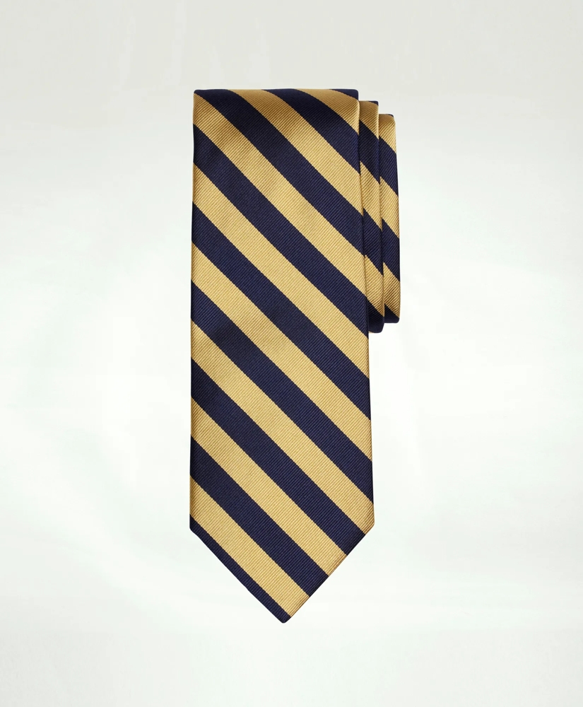 The classic Rep tie dates to the early 20th century when Britain donned their regimental ties with left-to-right stripes to represent heart to sword. They quickly caught on with the boarding school and social club set. And in 1902 we Americanized the style by switching the direction of the stripes in a nod to every-man democracy. Today the BB#4 pattern made from silk expertly woven in Italy, is an enduring classic having graced the collars of our biggest pop-art stars and presidents for over a century.