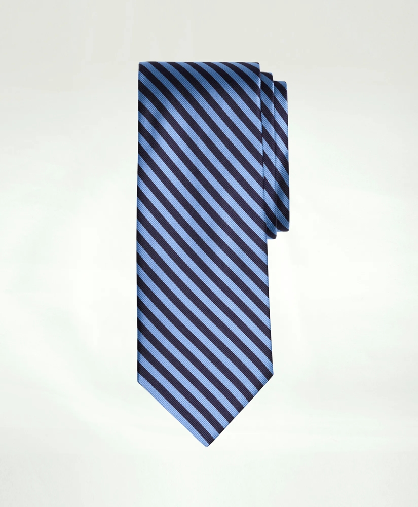The classic Rep tie dates to the early 20th century when Britain donned their regimental ties with left-to-right stripes to represent heart to sword. They quickly caught on with the boarding school and social club set. And in 1902 we Americanized the style by switching the direction of the stripes in a nod to every-man democracy. Today the BB#5 pattern made from silk expertly woven in Italy, is an enduring classic having graced the collars of our biggest pop-art stars and presidents for over a century.