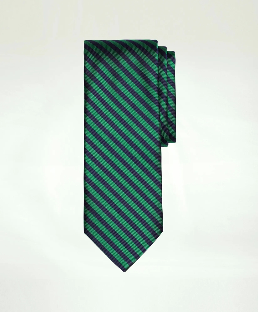 The classic Rep tie dates to the early 20th century when Britain donned their regimental ties with left-to-right stripes to represent heart to sword. They quickly caught on with the boarding school and social club set. And in 1902 we Americanized the style by switching the direction of the stripes in a nod to every-man democracy. Today the BB#5 pattern made from silk expertly woven in Italy, is an enduring classic having graced the collars of our biggest pop-art stars and presidents for over a century.