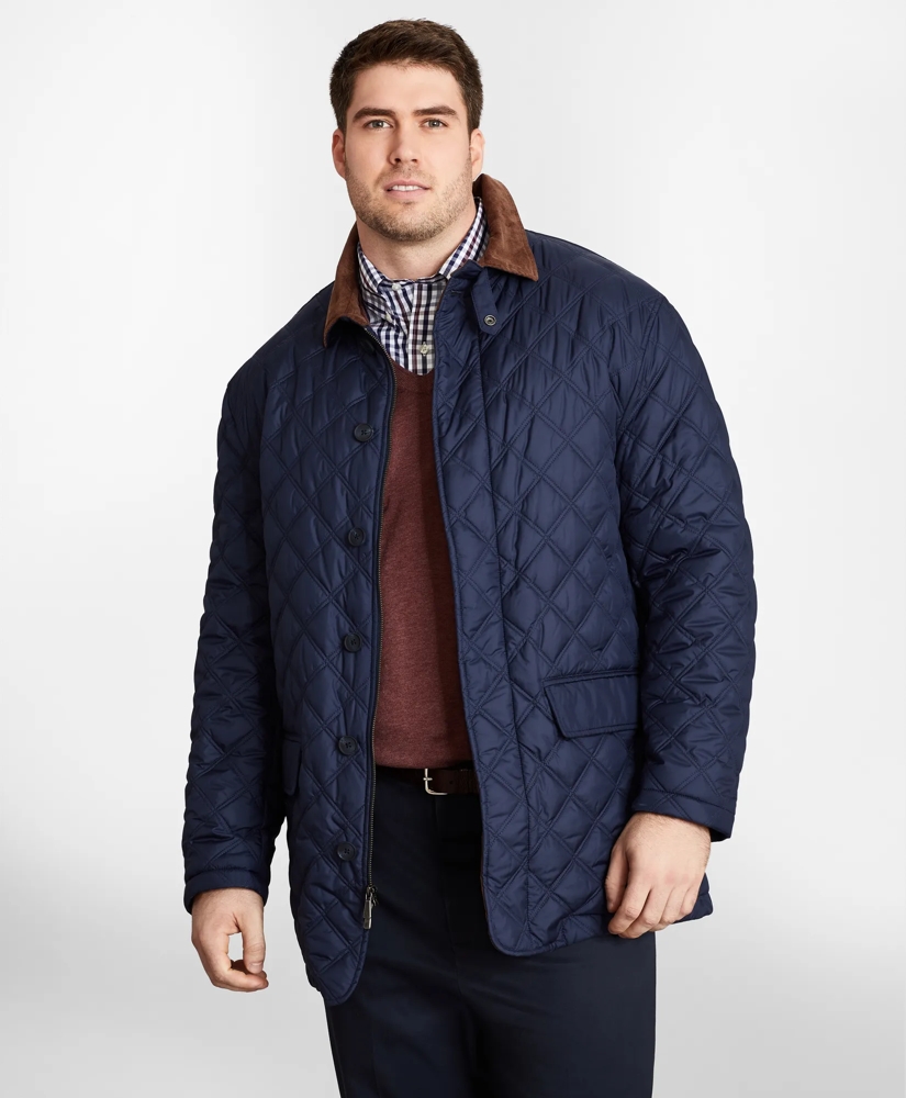 Ideal for fall, this quilted jacket is cast in a timeless diamond pattern. A water-resistant and water-repellent construction keeps you dry against the elements, while a plaid interior fully lined with Thermore® Ecodown® fill adds additional warmth. Center-front zipper with hidden-button storm flap. Two exterior and two interior pockets. Finished with adjustable back tabs and a corduroy collar.