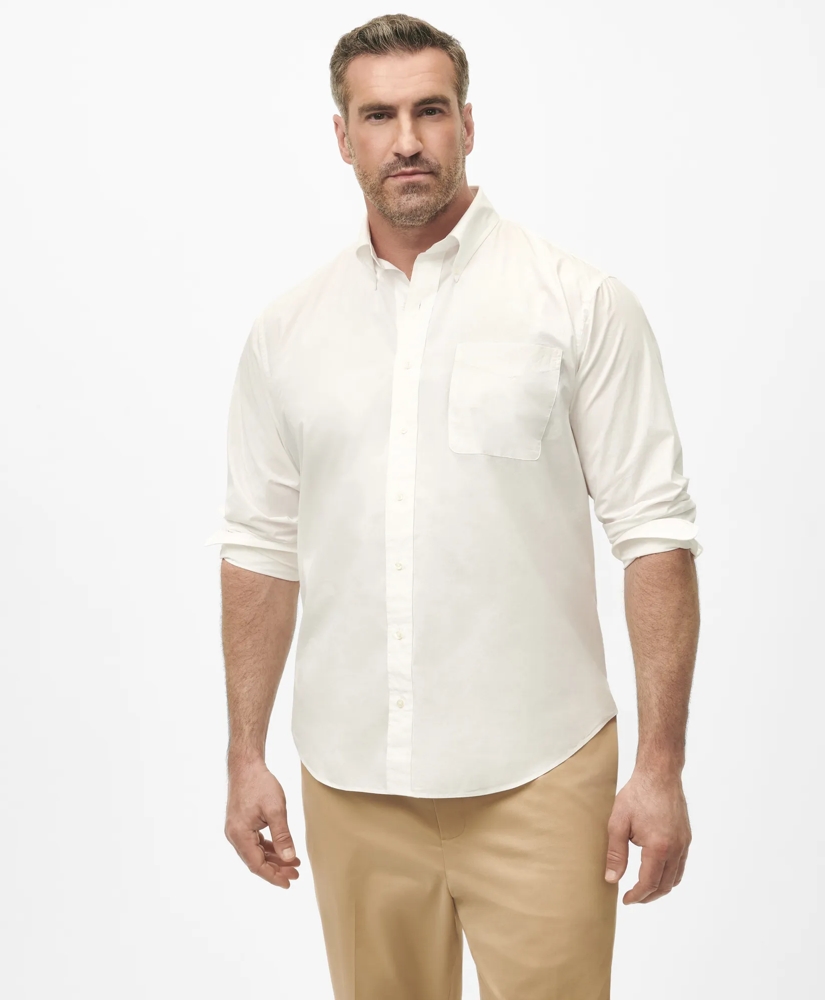 Our new Friday Shirt is cut in a cotton poplin washed for softness and a vintage look to give you that Friday feeling every day of the week. With a slightly relaxed fit and signature Brooks Brothers details like the Original Polo Button Down collar we invented and 6-Pleat Shirring® at the cuff, this versatile shirt looks great tucked or untucked, pressed or a little rumpled.