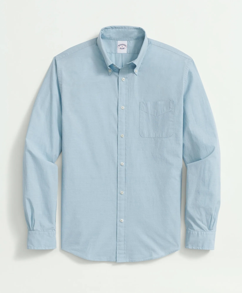Our new Friday Shirt is cut in a cotton poplin washed for softness and a vintage look to give you that Friday feeling every day of the week. With a slightly relaxed fit and signature Brooks Brothers details like the Original Polo Button Down collar we invented and 6-Pleat Shirring® at the cuff, this versatile shirt looks great tucked or untucked, pressed or a little rumpled.