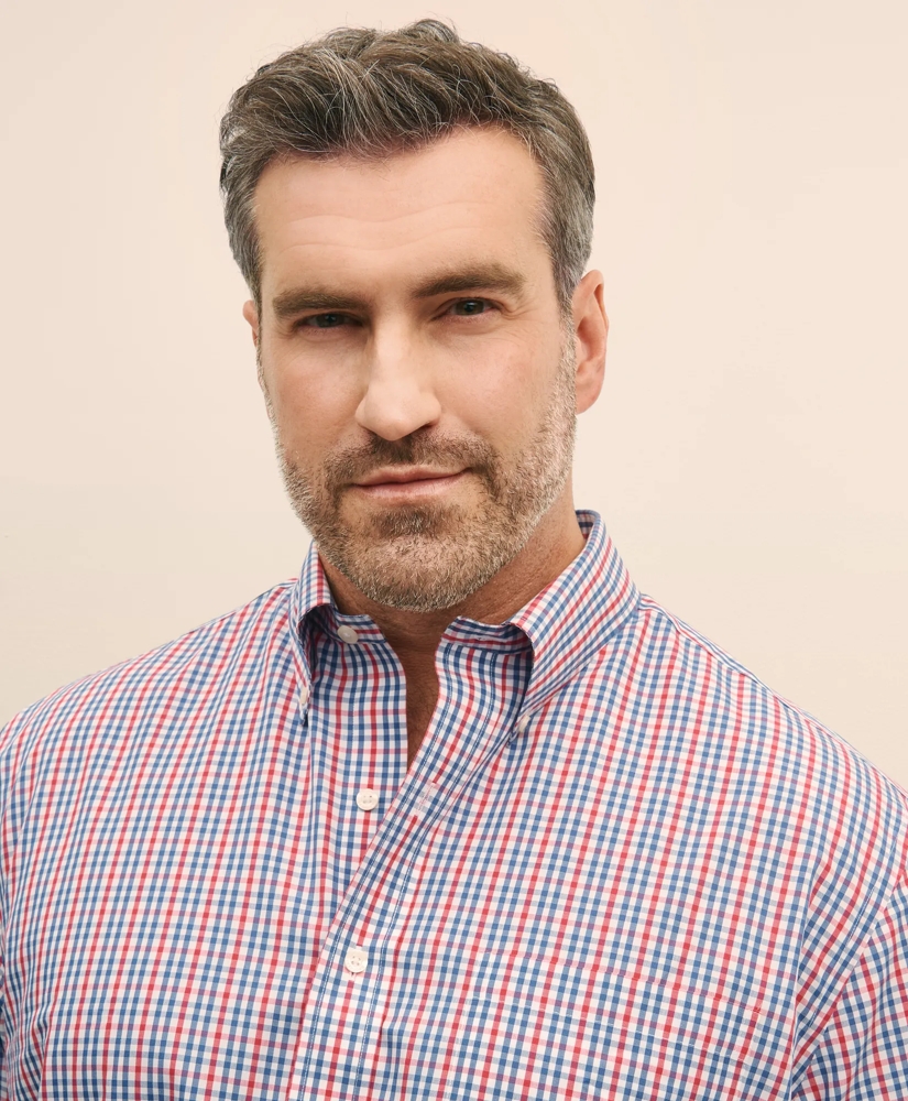 Big & Tall Stretch  Cotton Non-Iron Polo Button Down Collar, Gingham Shirt