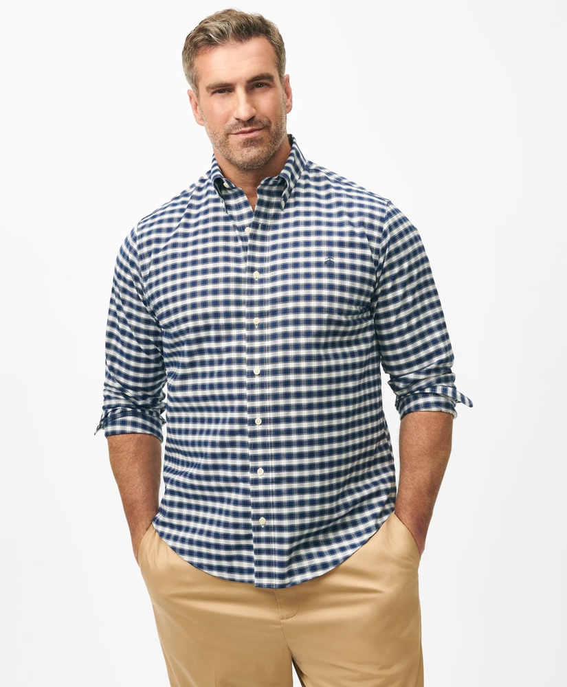 Big & Tall Stretch Cotton Non-Iron Oxford Polo Button Down Collar, Outline Check Shirt