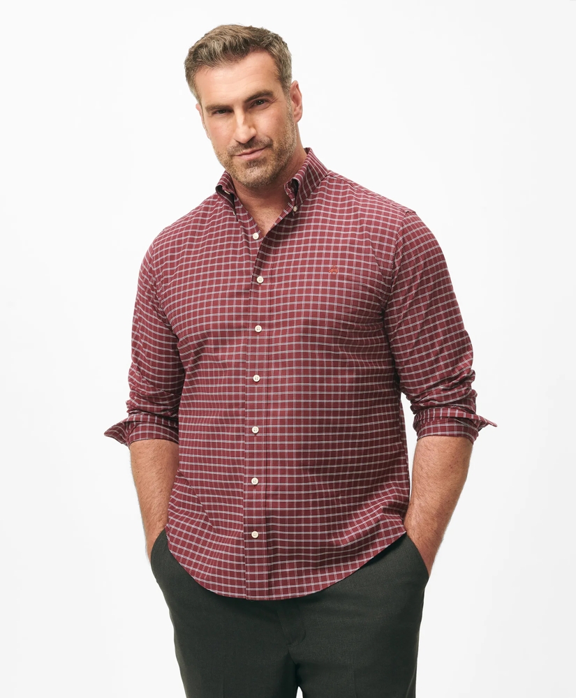 Big & Tall Stretch Cotton Non-Iron Oxford Polo Button Down Collar, Windowpane Shirt