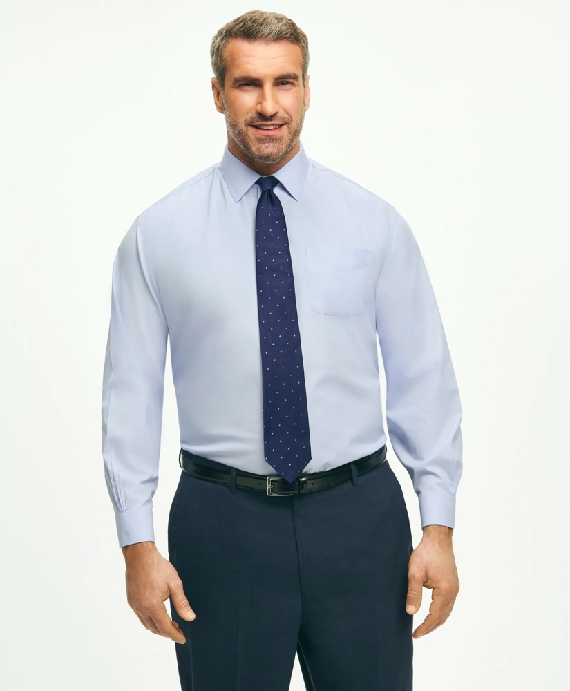 Our non-iron dress shirt is crafted from American-grown Supima® cotton pinpoint with a touch of stretch and is finished with the established Ainsley collar that measures 4" point to point. It is specially treated to resist wrinkles, and our signature 6-Pleat Shirring® at the barrel cuffs and pucker-free seams reinforce Brooks Brothers' dedication to a well-made dress shirt. Additional features include a left chest pocket and a center back pleat.