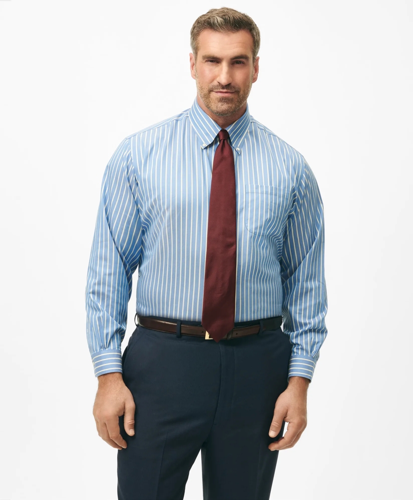 Big & Tall Stretch Supima® Cotton Non-Iron Twill Polo Button Down Collar, Ground Stripe Dress Shirt