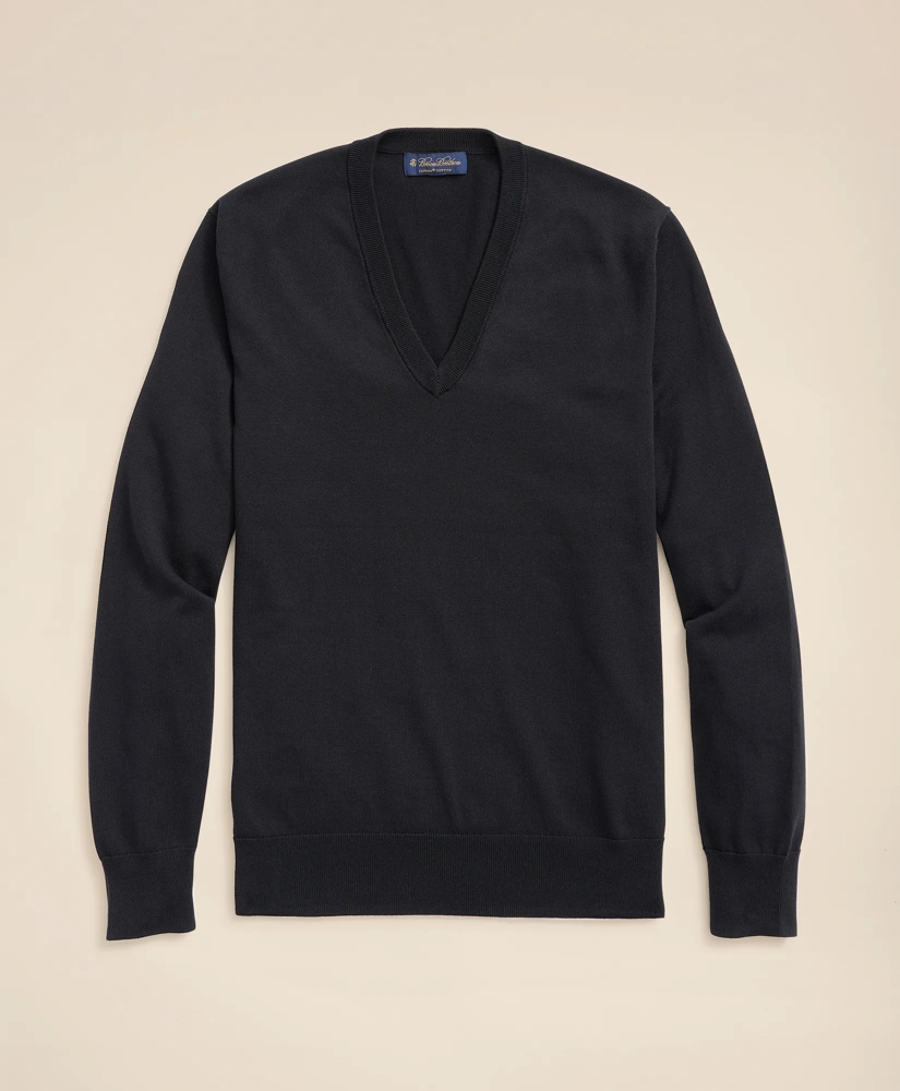 We've improved our Supima® cotton with finer yarn count and gauge for year-round wear. Not only does it look and feel better, but it wears better over time. These updates, along with a tighter tension and finer-gauge construction, have perfected our classic v-neck for seasonless style. Ribbed neck, cuffs and hem.