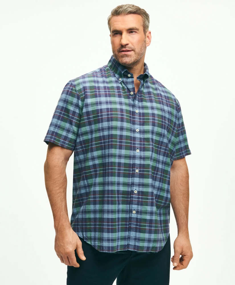 Big & Tall Washed Cotton Madras Short Sleeve Button-Down Collar Sport Shirt