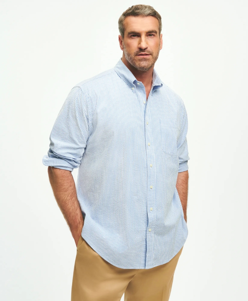 Big & Tall Washed Cotton Seersucker Button-Down Collar Striped, Sport Shirt