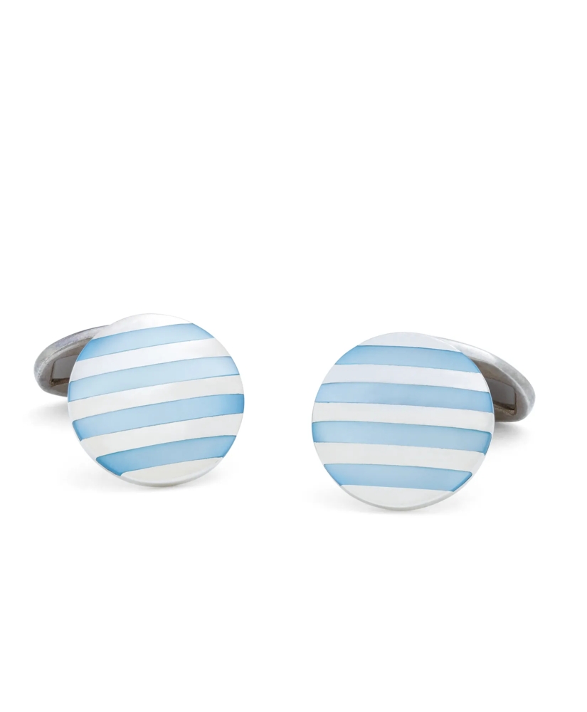 Cuff links, made from sterling silver with smoked mother-of-pearl detail. Made in England.