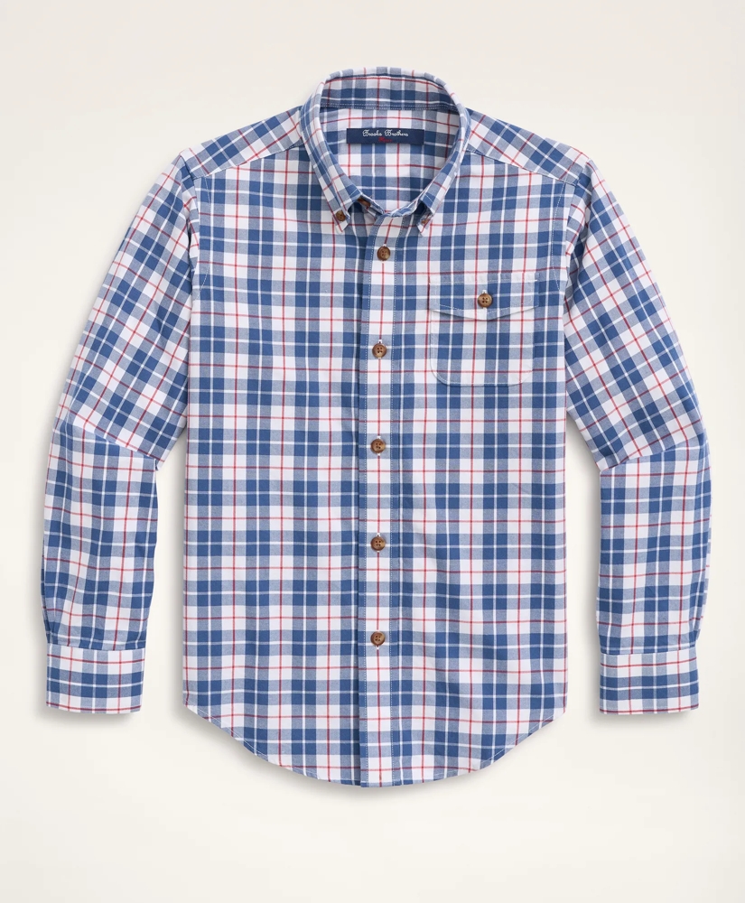 Boys Brushed Twill Blue Check Sport Shirt